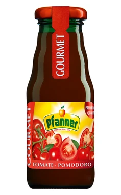 Pro výrobu Pfanner Gourmet rajčatového nápoje se používá jemné pyré z rajčat uzrálých na slunci. Mírně osolená rajčatová šťáva se 100% podílem rajčat chutná ovocně a kořenitě zároveň.