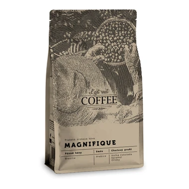 Objevte kávu, která je pražena pro dokonalý zážitek v každém šálku. Magnifique je ideální pro pákové i automatické kávovary, kde naplno vynikne její bohatý a vyvážený charakter, stvořený pro milovníky silného espressa . Nabízí dokonalou harmonii mezi nízkou aciditou, plným tělem a dlouhotrvající chutí, ve které se snoubí nugát, holandské kakao a čokoláda. Užijte si espresso, které je silné, ale zároveň jemné a dokonale vyvážené.