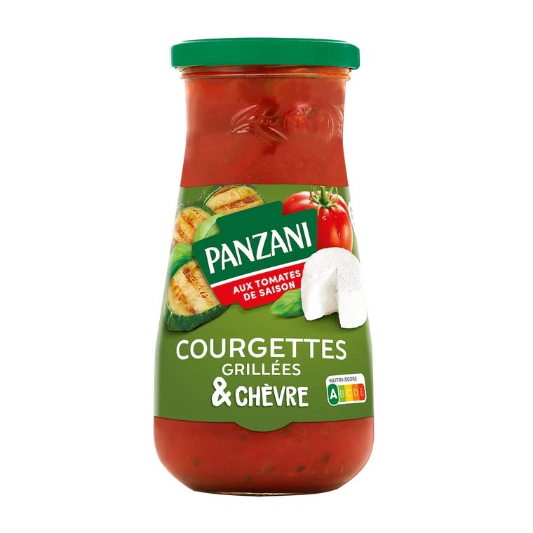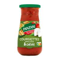 Kousky rajčatové dužiny a rajčatové pyré (65 %), voda, grilovaná cuketa 9 %, cibule, KOZÍ SÝR 1,5 % (MLÉKO), slunečnicový olej, cukr, bazalka, sůl, modifikovaný kukuřičný škrob, KOZÍ SÝR * v prášku 0,4 %, koncentrovaná citronová šťáva |