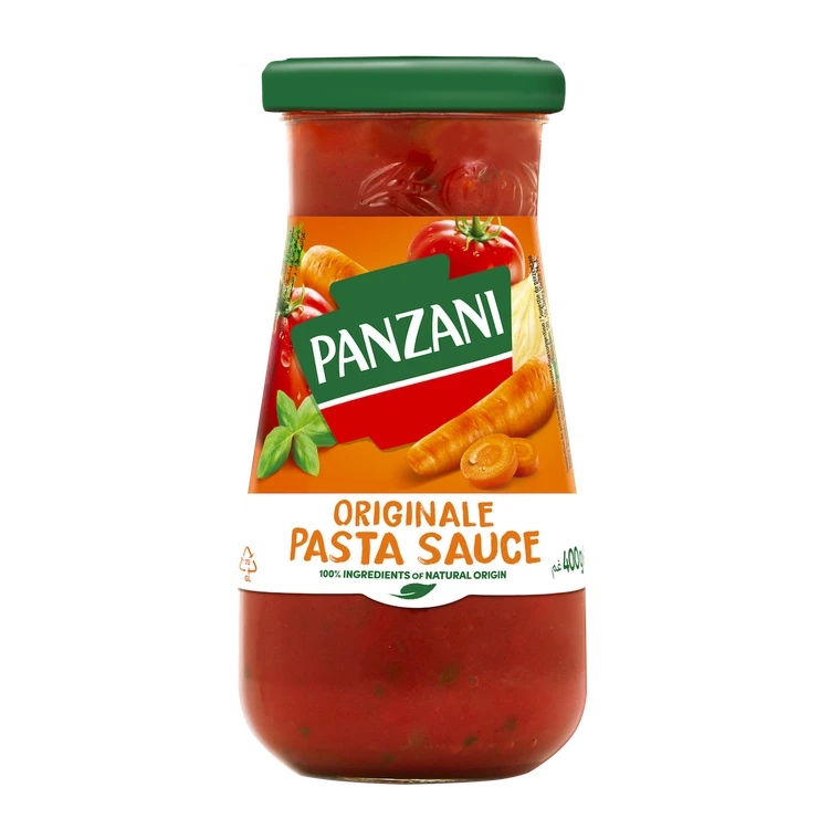 Rajčatová dužnina a kousky rajčat 63% (rajčata 47%, rajčatové pyré), rajčatové pyré 12%, cilbule 9%, voda, mrkev 3,5%, paneneský olivový olej, cukr, sůl, modifikovaný kukuřičný škrob, směs bylinek (vč. bazalky 0,1%), zeleninový extrakt, čerstvý česnek, přírodní aroma bobkového listu. |