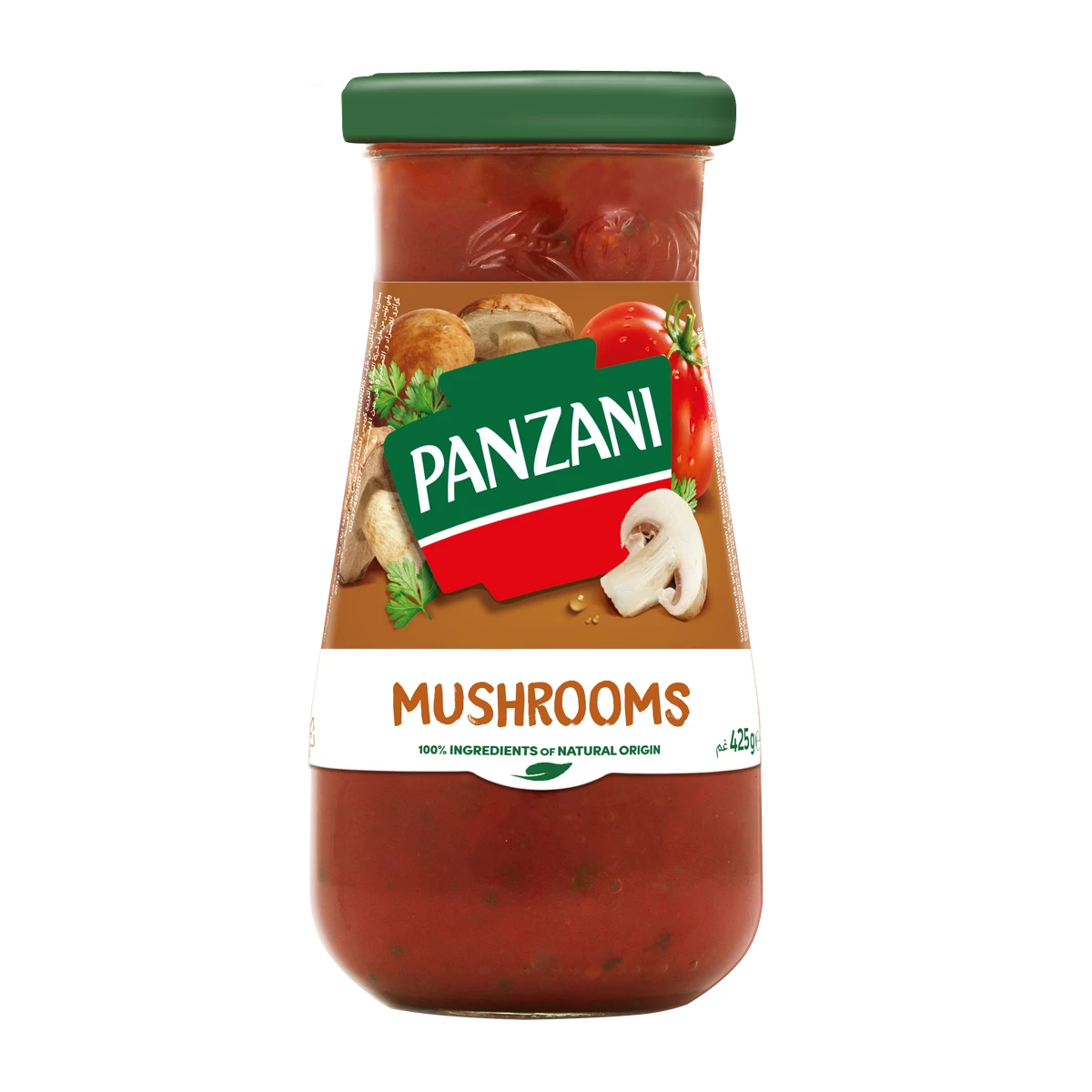Rajčatová dužina s kousky rajčat 67%, (rajčata 47%, rajčatové pyré), rajčatové pyré 8%, cibule, žampiony 4%, rehydratovaný hřib žlutomasý 2%, cukr, panenský olivový olej, sůl, petržel 0,6%, rehydratovaný hřib smrkový 0,5%, česnek, modifikovaný kukuřičný škrob, přírodní aromata, cibulový exktrakt. |